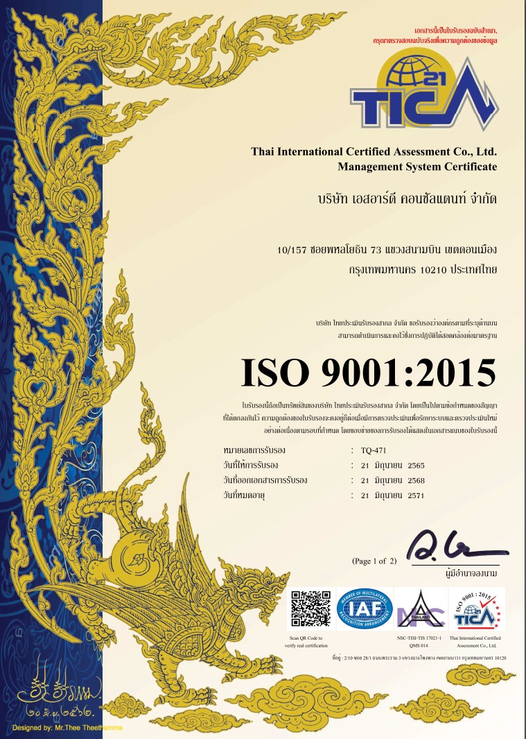 องค์กรทั่วประเทศเลือก SRD Consultant เป็นผู้ให้บริการอบรมความปลอดภัย เพราะเราได้รับการรับรองทั้งจากหน่วยงานภาครัฐและมาตรฐานสากล โดยผ่านการรับรอง ISO 9001:2015 จาก Thai International Certified Assessment Co., Ltd. สะท้อนถึงคุณภาพและมาตรฐานการบริหารจัดการที่เชื่อถือได้